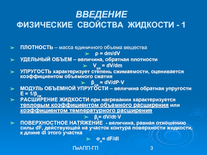 ФИЗИЧЕСКИЕ СВОЙСТВА ЖИДКОСТИ - 1