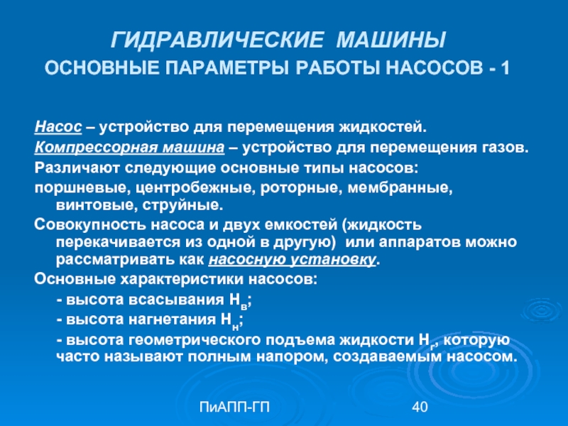 ОСНОВНЫЕ ПАРАМЕТРЫ РАБОТЫ НАСОСОВ - 1