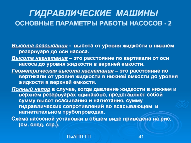 ОСНОВНЫЕ ПАРАМЕТРЫ РАБОТЫ НАСОСОВ - 4