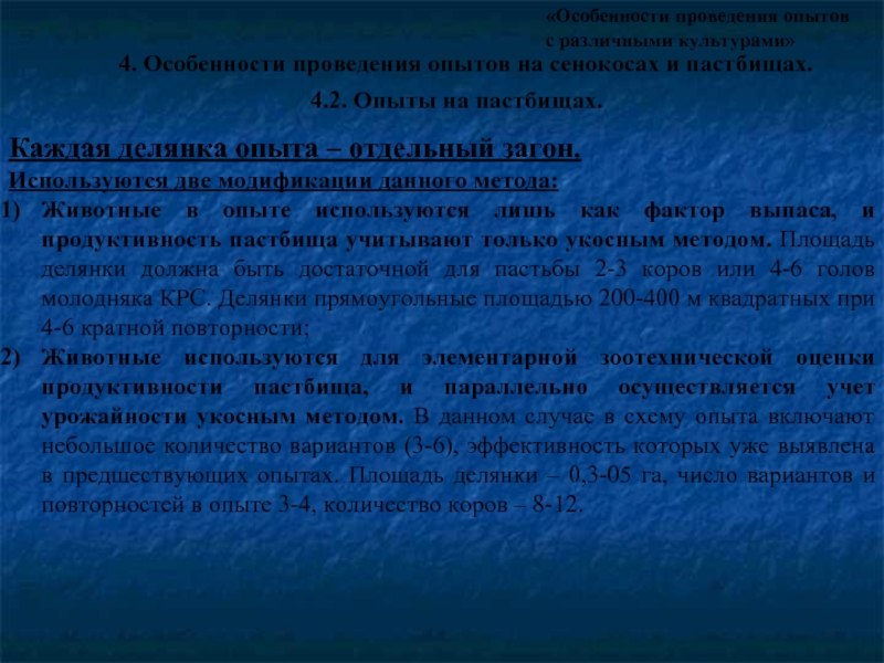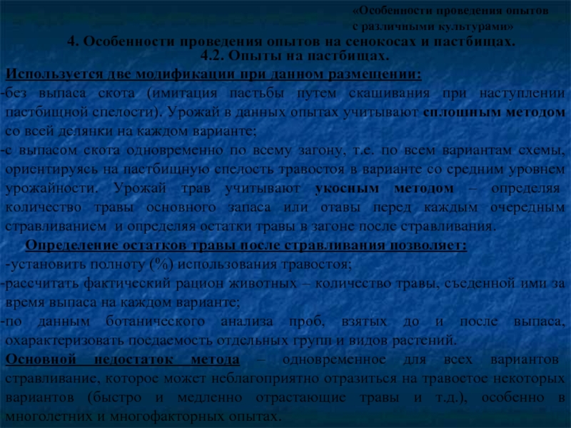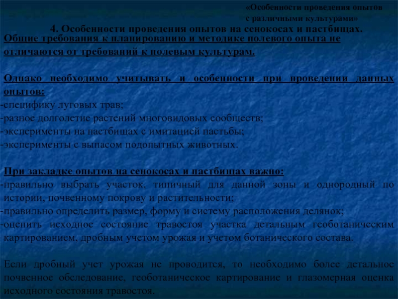 4. Особенности проведения опытов на сенокосах и пастбищах.