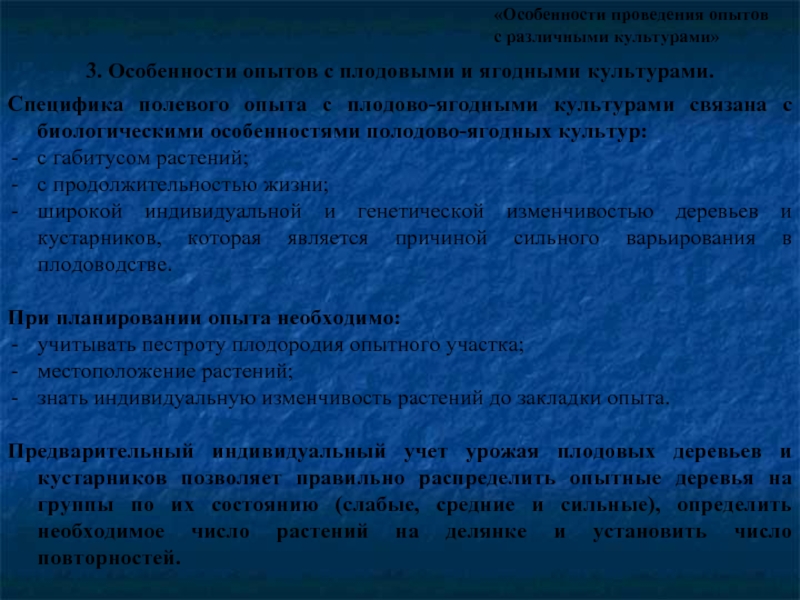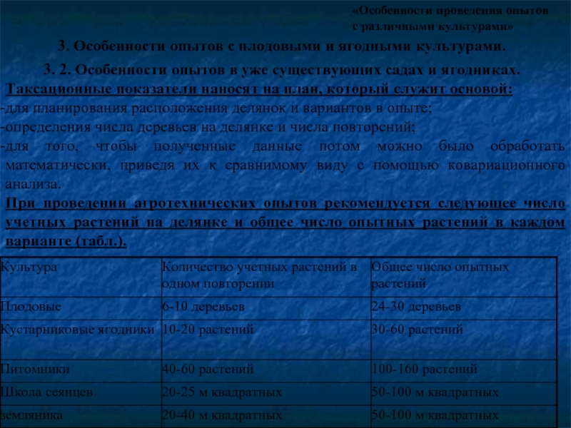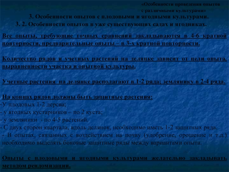 3. Особенности опытов с плодовыми и ягодными культурами.