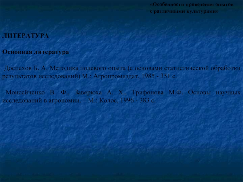 - В опытах, связанных с воздействием на почву (удобрение, орошение и т.д.) необходимо выделять боковые защитные ряды между вариантами опыта.