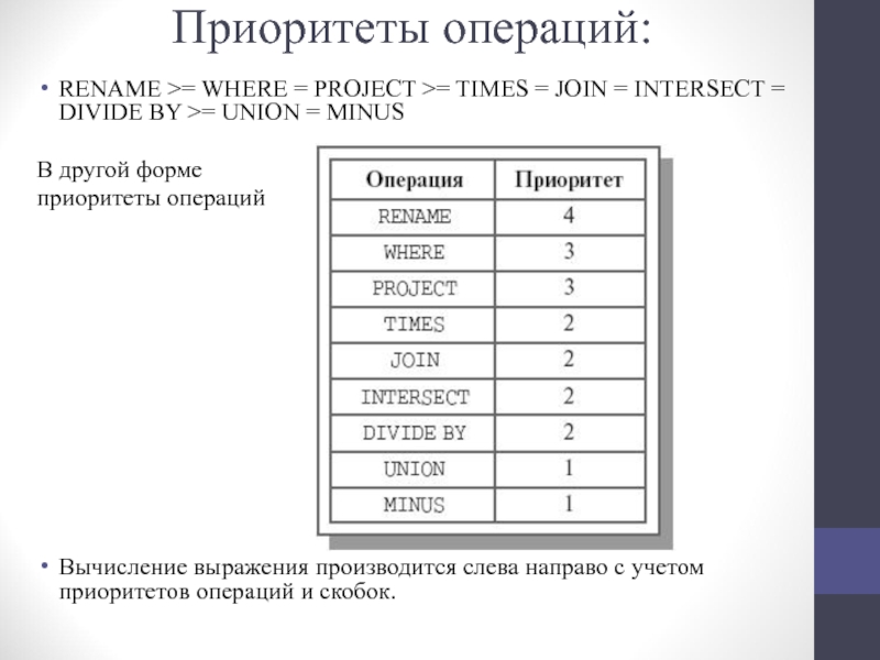 Слайд 9Приоритеты операций: