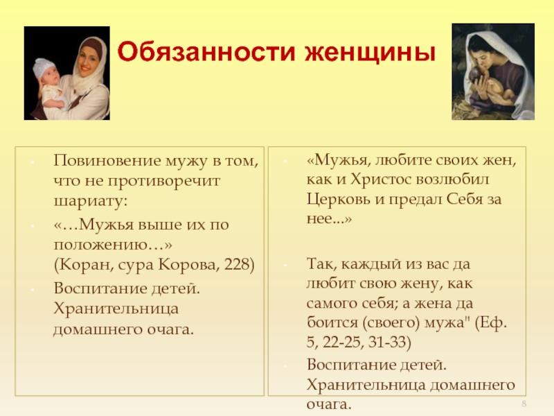 Так, каждый из вас да любит свою жену, как самого себя; а жена да боится (своего) мужа" (Еф. 5, 22-25, 31-33)