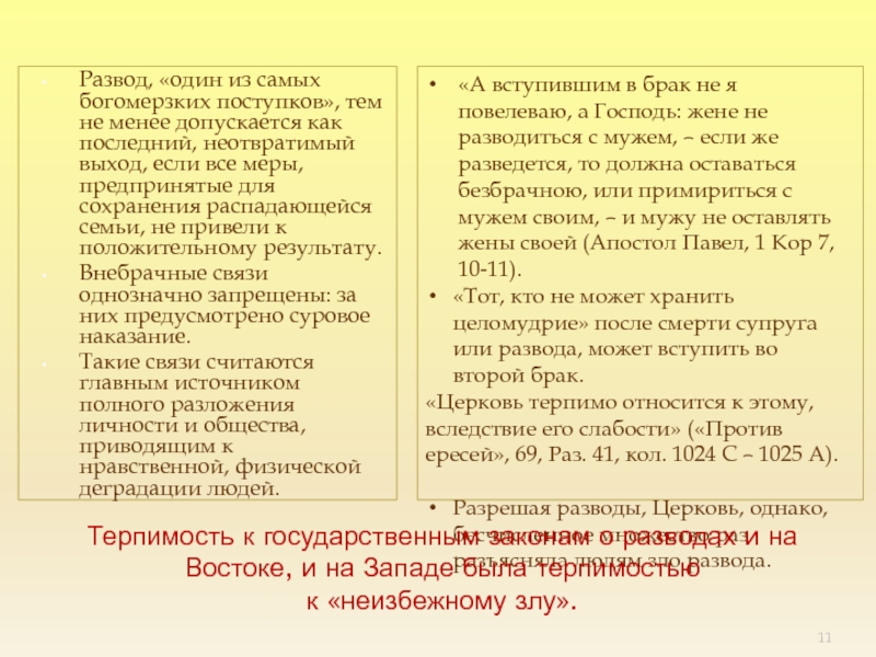 Терпимость к государственным законам о разводах и на Востоке, и на Западе была терпимостью