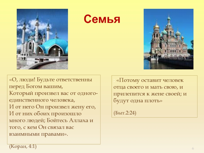 : «Потому оставит человек отца своего и мать свою, и прилепится к жене своей; и будут одна плоть»