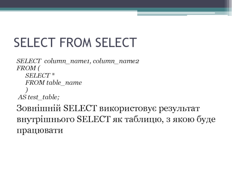 Створює нову таблицю, що матиме структуру, як і результуюча таблиця внутрішнього запиту SELECT