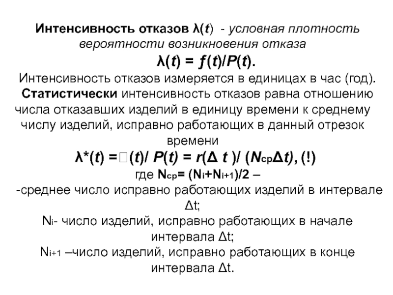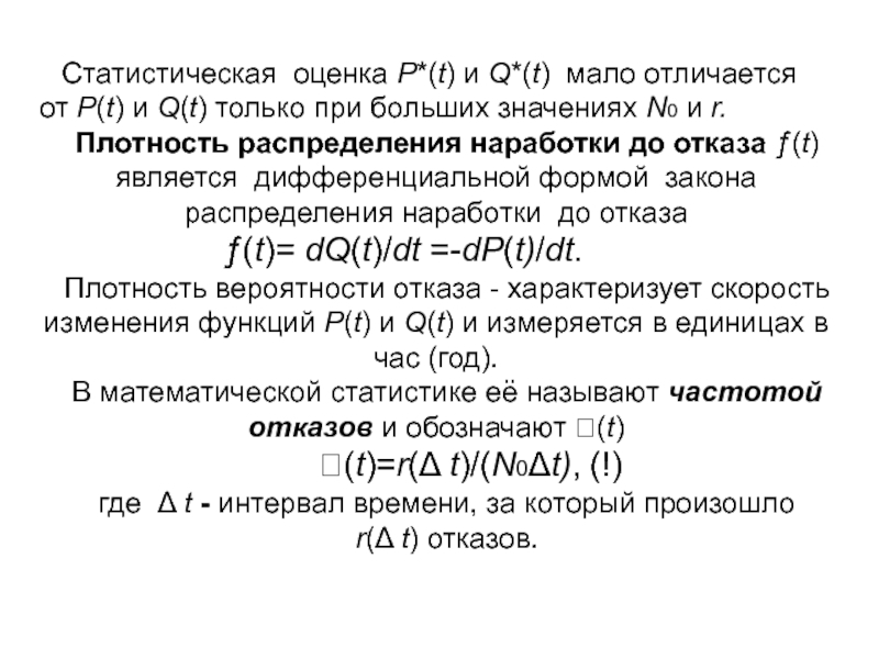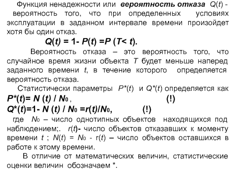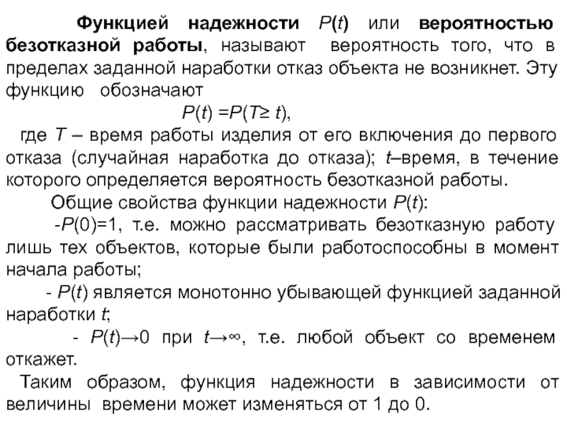 Отказ объекта является событием случайным, а время до его возникновения- случайная величина.