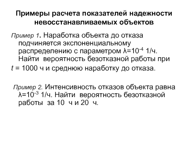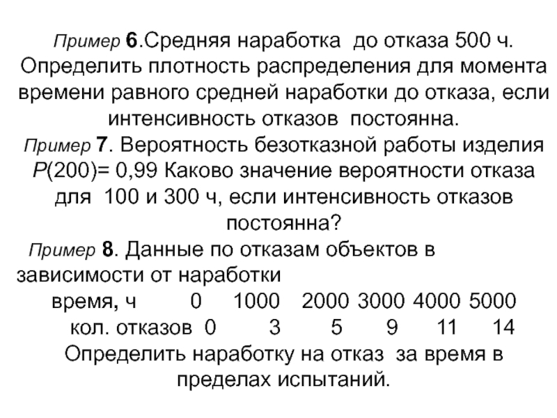 Слайд 104Пример 1. У восстанавливаемого изделия установился простейший поток отказов с наработкой