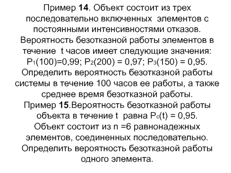 Слайд 17 При расчете надежности функционирования объектов интересуются продолжительностью или объемом