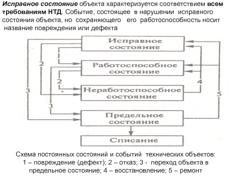 Слайд 16Исправное состояние объекта характеризуется соответствием всем требованиям НТД. Событие, состоящее в
