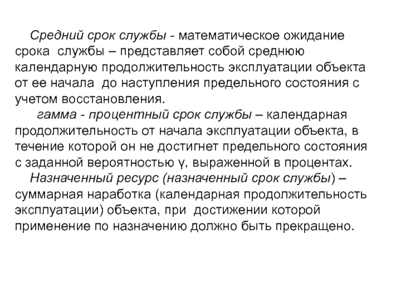 Долговечность – свойство объекта сохранять работоспособное состояние до наступления предельного состояния при установленной системе технического обслуживания и ремонта.