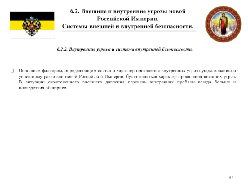 6.2 Внешние и внутренние угрозы новой Российской Империи. Системы внешней и внутренней безопасности.