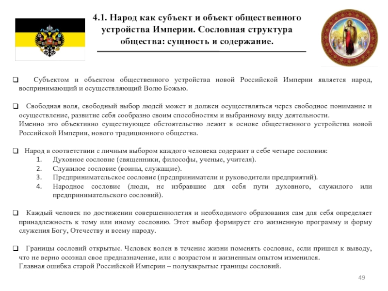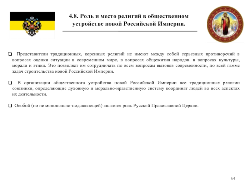 4.8 Роль и место религий в общественном устройстве новой Российской Империи.