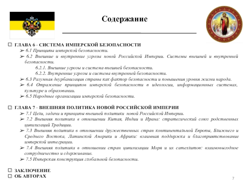 7.1 Цели, задачи и принципы внешней политики новой Российской Империи.