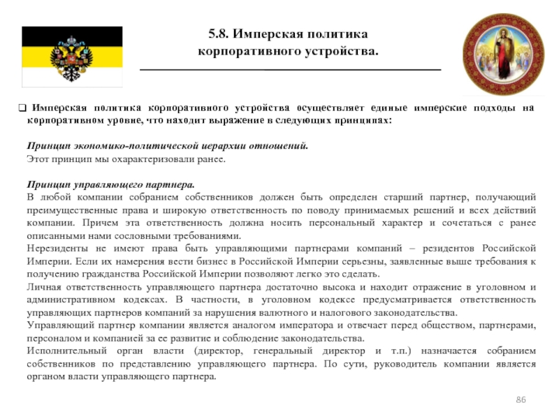 5.8 Имперская политика корпоративного устройства.