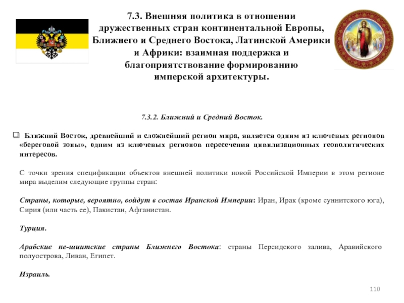 Слайд 1137.3. Внешняя политика в отношении дружественных стран континентальной Европы, Ближнего и
