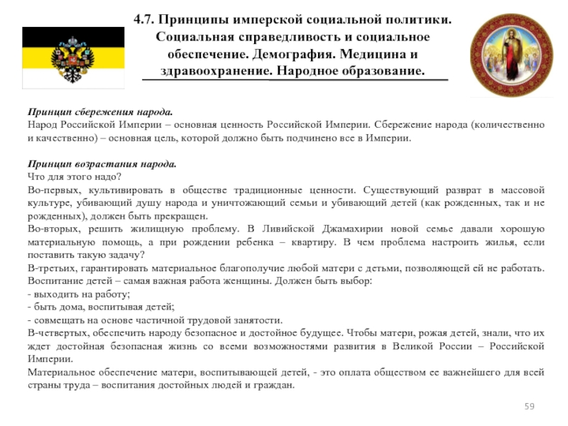 4.7 Принципы имперской социальной политики. Социальная справедливость и социальное обеспечение. Демография. Медицина и здравоохранение. Народное образование.