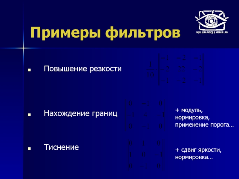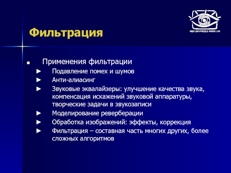 Фильтрация – составная часть многих других, более сложных алгоритмов