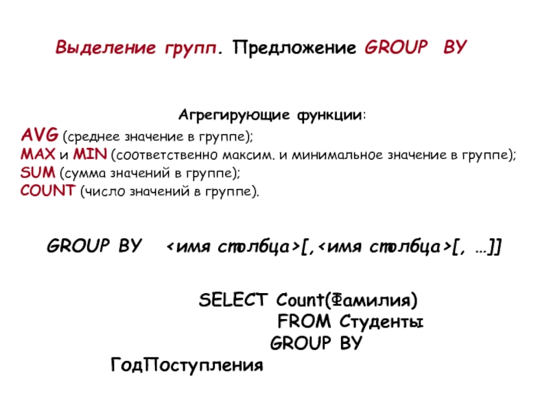 GROUP BY <имя столбца>[,<имя столбца>[, …]]