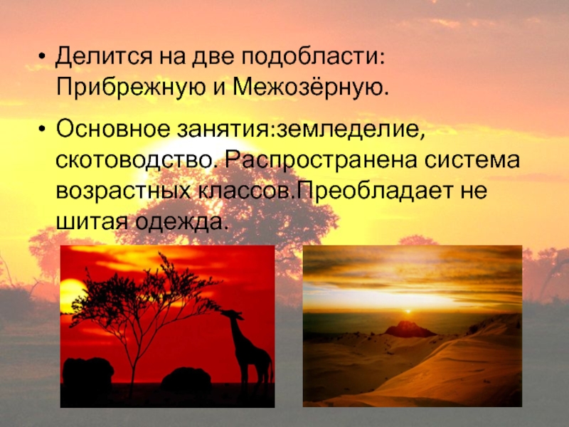Слайд 16Делится на две подобласти: Прибрежную и Межозёрную.