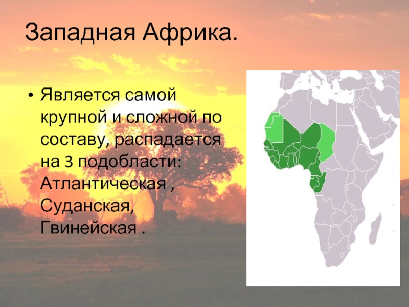 подобласти:Атлантическая , Суданская, Гвинейская .