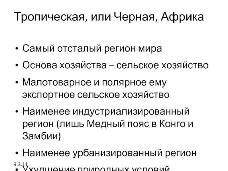 Наименее индустриализированный регион (лишь Медный пояс в Конго и Замбии)