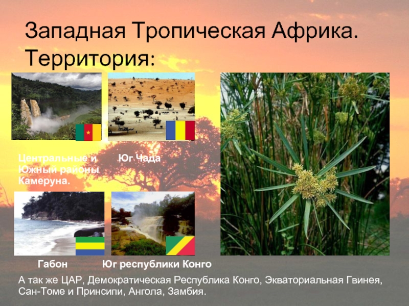 так же ЦАР, Демократическая Республика Конго, Экваториальная Гвинея, Сан-Томе и Принсипи, Ангола, Замбия.