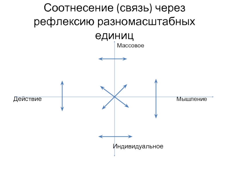 Слайд 7Соотнесение (связь) через рефлексию разномасштабных единиц