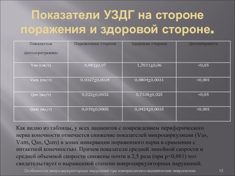 Особенности микроциркуляторных нарушений при компрессионно-ишемических невропатиях