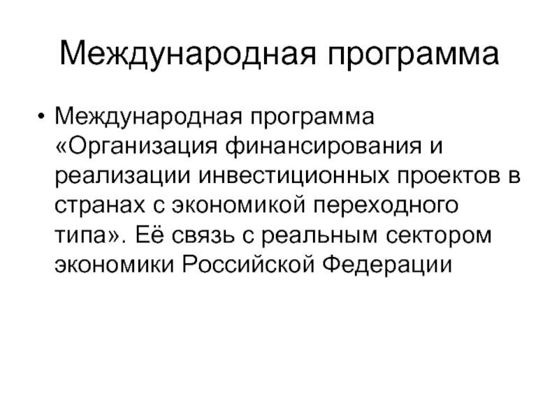 Международная программа «Организация финансирования и реализации инвестиционных проектов в странах