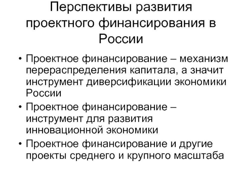 Проектное финансирование и другие проекты среднего и крупного масштаба
