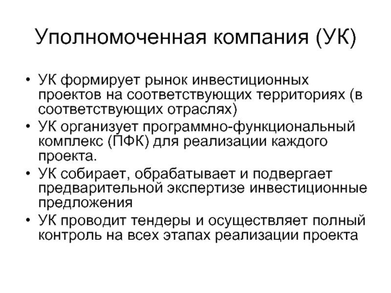 УК формирует рынок инвестиционных проектов на соответствующих территориях (в