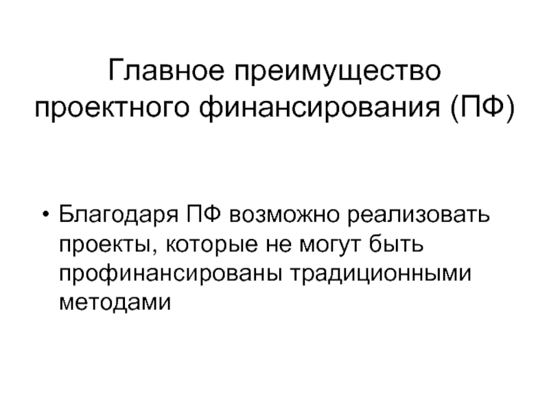 Слайд 4Общие принципы проектного финансирования (ПФ)