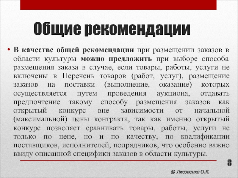Детально описывать в техническом задании специфику размещаемого заказа, объём необходимых работ, услуг и результаты исполнения государственного (муниципального) контракта, требуемые заказчику, с целью изначального полного информирования участников размещения заказа об издержках и сложностях, связанных с исполнением контракта. Такой подход позволяет потенциальным участникам уже на начальной стадии размещения заказа сопоставить свои возможности с реально существующей ситуацией при принятии решения об участии либо неучастии в таком заказе. Таким образом, изначально отсекаются участники размещения, недостаточно квалифицированные для исполнения контракта и неспособные обеспечить требуемые заказчику результаты и последствия поставки товаров, выполнения работ, оказания услуг.