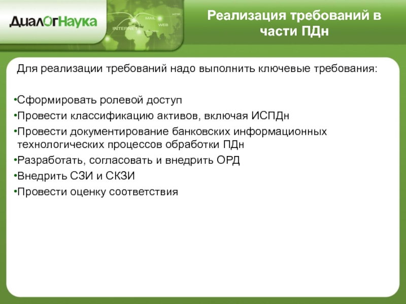 Слайд 6Реализация требований в части ПДн