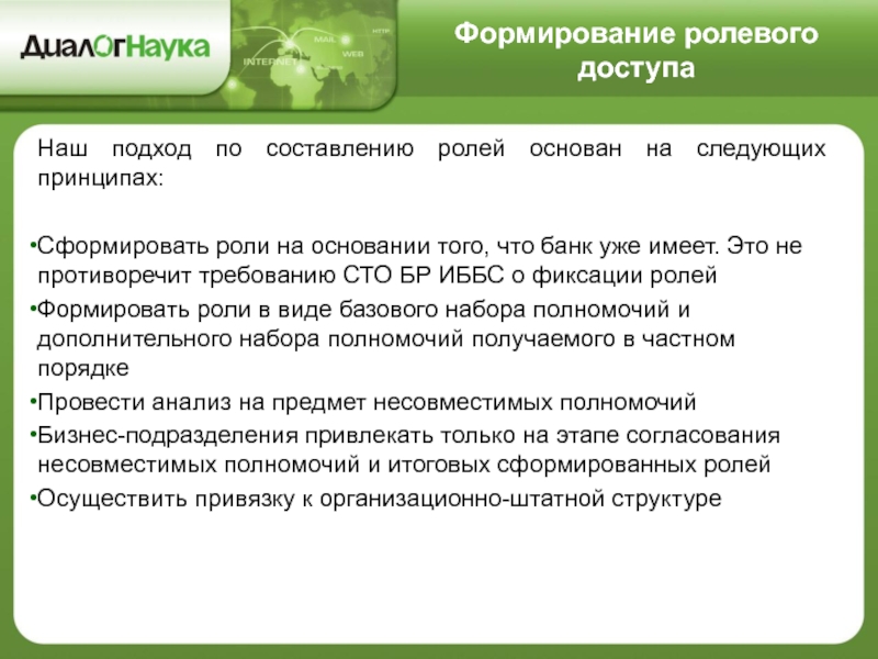 Слайд 8Формирование ролевого доступа