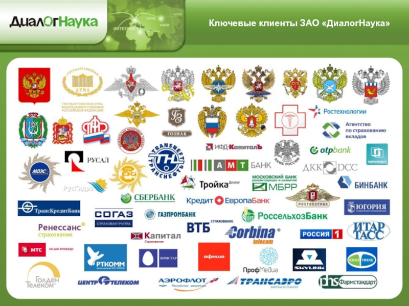 Слайд 24Ключевые клиенты ЗАО «ДиалогНаука»