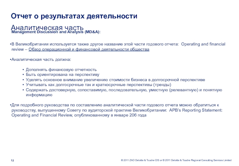 Источник: Gems and jetsam - surveying annual reports, исследование Deloitte 2011 года на основе обзора годовых отчетов 100 компаний, имеющих полноценный листинг на лондонской фондовой бирже из входящих в список 350 компаний по величине капитализации.