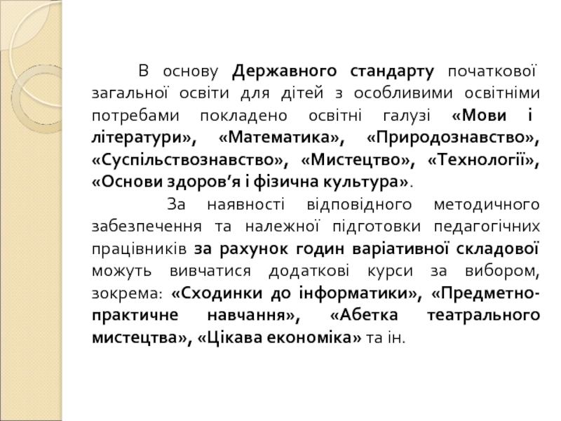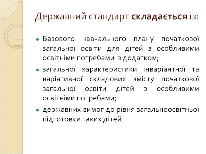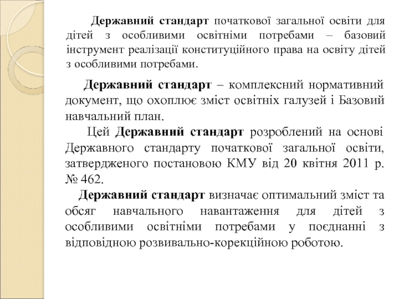 Слайд 2 Державний стандарт початкової загальної освіти для дітей з