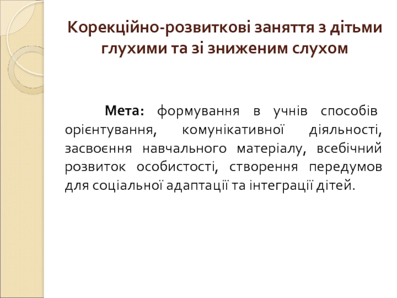 Слайд 19Корекційно-розвиткові заняття з дітьми глухими та зі зниженим слухом
