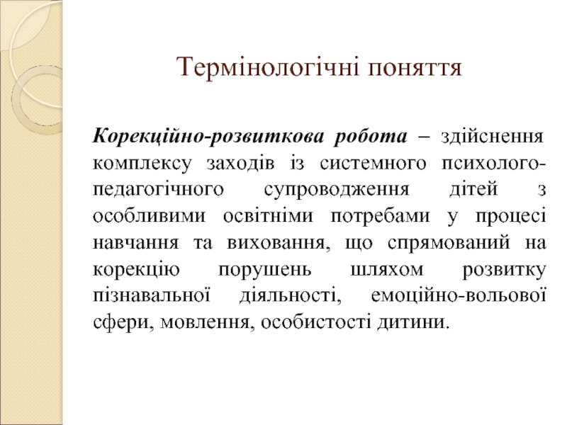 з особливими освітніми потребами у процесі навчання та виховання, що спрямований на корекцію порушень шляхом розвитку пізнавальної діяльності, емоційно-вольової сфери, мовлення, особистості дитини.