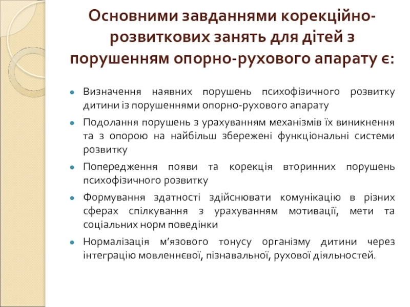 Слайд 27Основними завданнями корекційно-розвиткових занять для дітей з порушенням опорно-рухового апарату є: