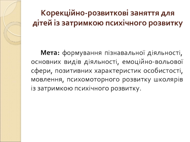 Слайд 23Корекційно-розвиткові заняття для дітей із затримкою психічного розвитку