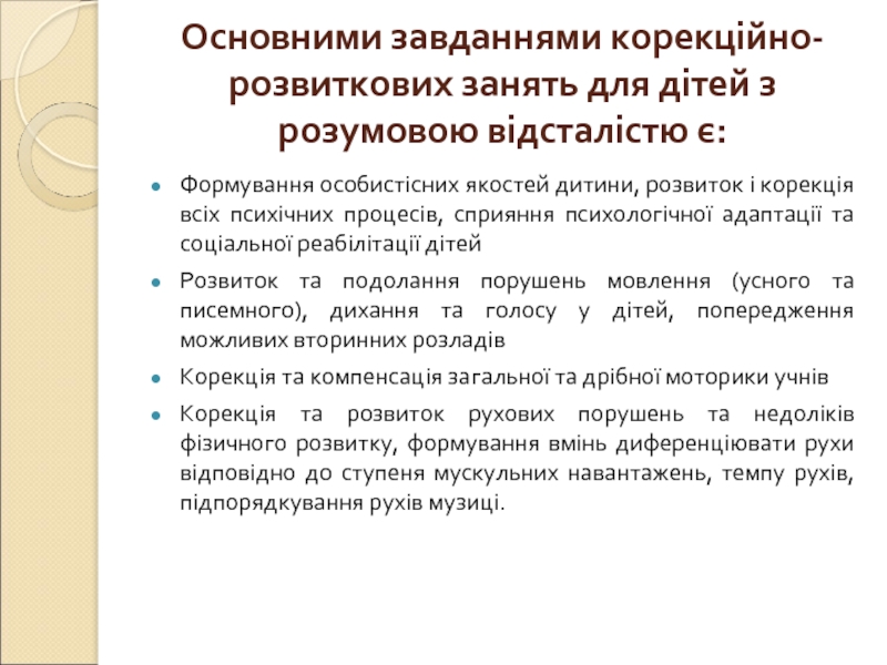 Слайд 29Основними завданнями корекційно-розвиткових занять для дітей з розумовою відсталістю є: