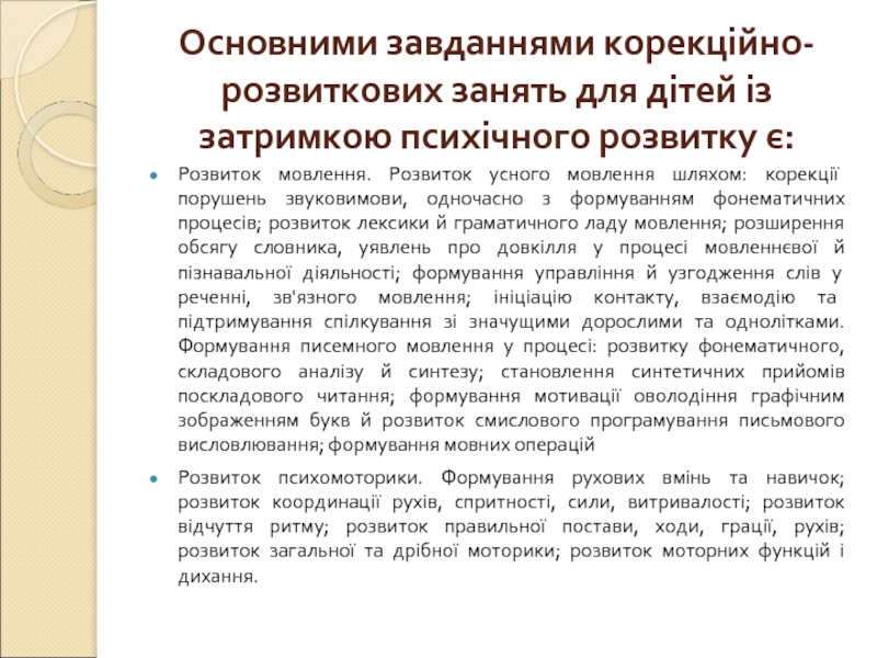 Слайд 24Основними завданнями корекційно-розвиткових занять для дітей із затримкою психічного розвитку є:
