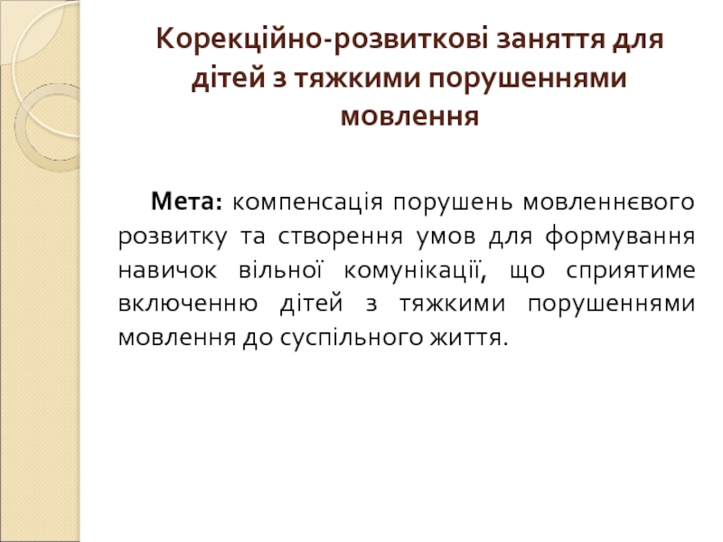 порушень мовленнєвого розвитку та створення умов для формування навичок вільної комунікації, що сприятиме включенню дітей з тяжкими порушеннями мовлення до суспільного життя.