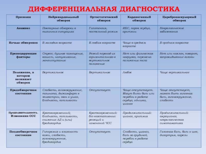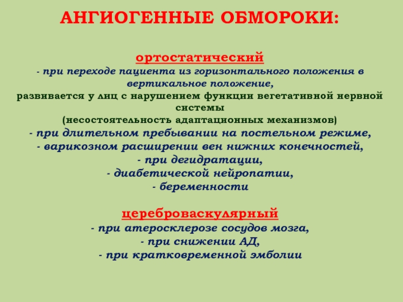 АНГИОГЕННЫЕ ОБМОРОКИ: