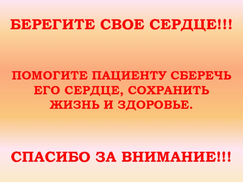 Слайд 23БЕРЕГИТЕ СВОЕ СЕРДЦЕ!!!