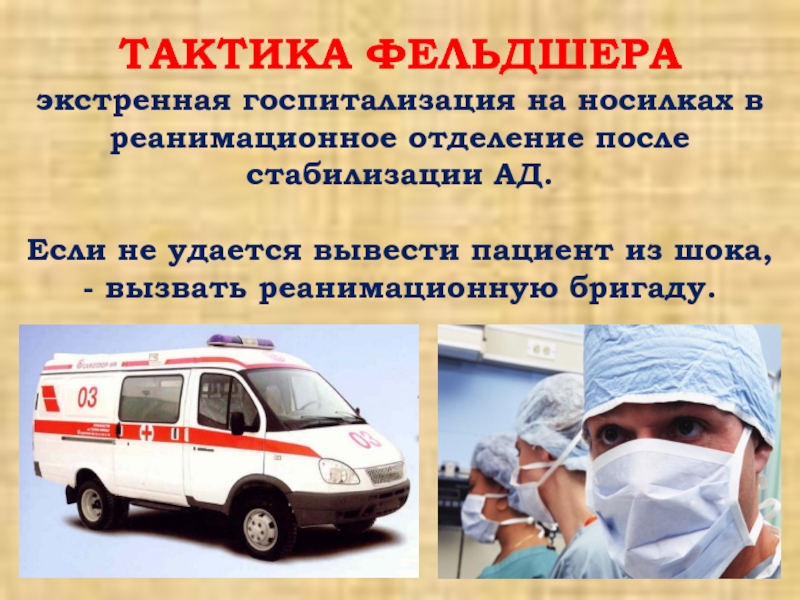 не удается вывести пациент из шока, - вызвать реанимационную бригаду.